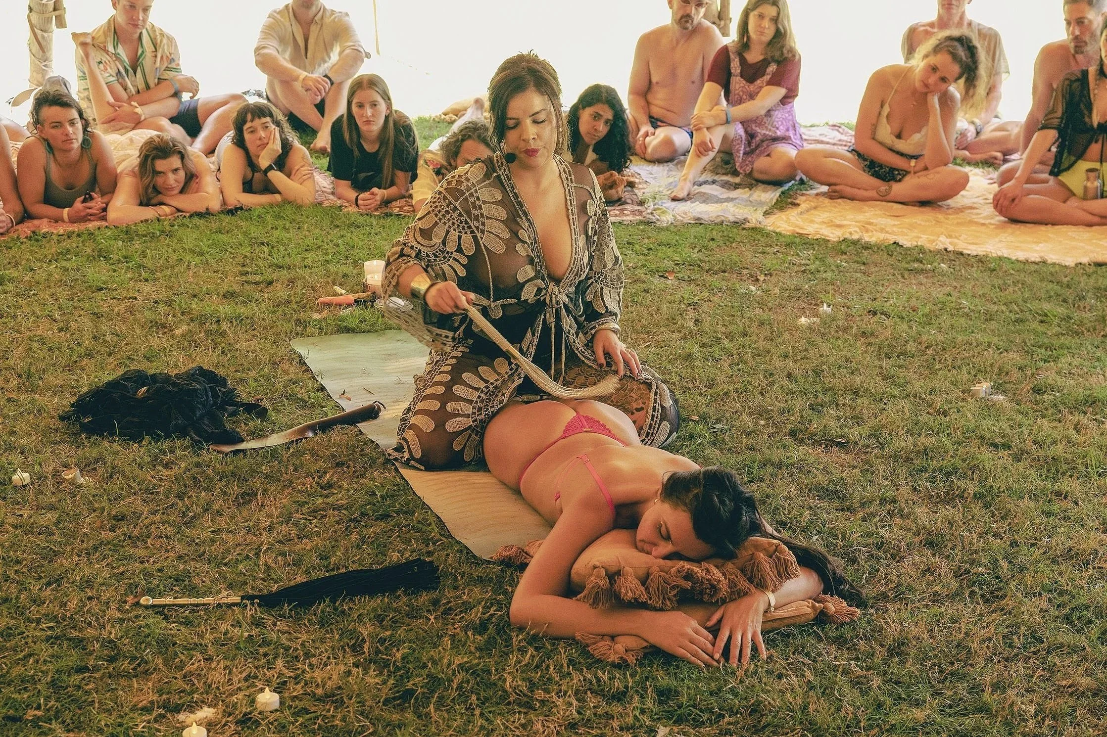I most enjoy leading workshops centred around embodiment. At festivals I have facilitated interactive circles focused on igniting the dark feminine, and curating your own sacred spanking ritual. I also enjoy designing and hosting bespoke workshops in my studio, or other venues upon request.